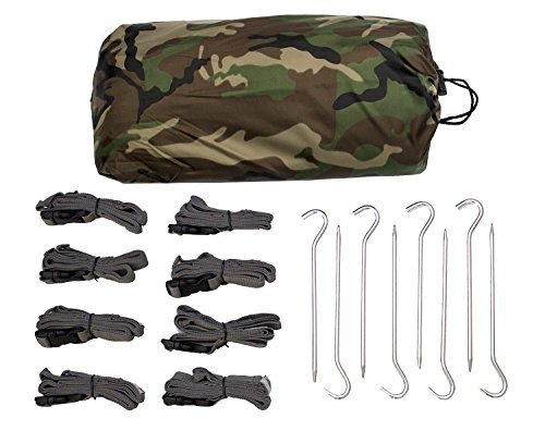 Aqua Quest Defender Tarp & Accessories Kit - 100% Waterproof & Heavy Duty Nylon Material - 13 x 10 ft Tarpaulin, 8-pc Boa Adjustable Strap Set, 8 Lightweight Pegs - Large / XL - Camo, Camouflage