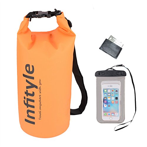 All images of Waterproof Dry Bags - Floating Compression Stuff Sacks Gear Backpacks for Fishing Boating Kayaking Canoeing Snowboarding - Free Universal Water Proof Phone Case and Pocket Tool (Orange, 10L)