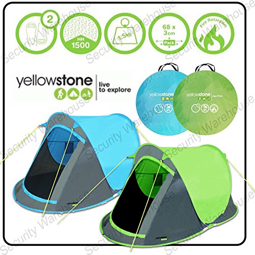 FAST Quick EASY PITCH 2 Man POP UP TENT Camping FESTIVAL INSTANT Two Person Blue (BLUE)