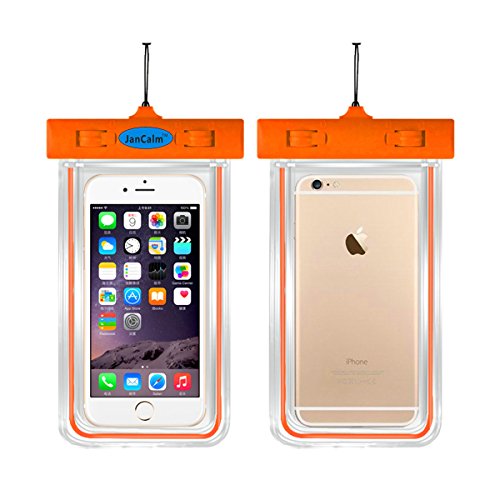 All images of Universal Waterproof Pouch Case,JanCalm [Luminous Feature] IPX8 Certified Protective Smartphone Credit Card Waterproof Bag Life Case for iPhone 6 Plus/6/5s/5/5C/4S,for Galaxy S6,S5,S4 Etc (Orange)