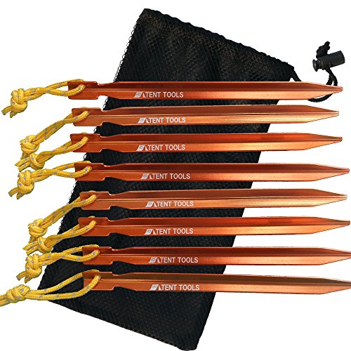 7075 Aluminum Ultralight Tent Stakes Y Beam Design with Reflective Pull Cords By Tent Tools (Orange, 8 Stakes)
