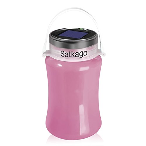Satkago Portable Solar Powered and USB Charging Folding Silicone Bottle LED Field Camping Hiking Tent Lighting Lantern Lamp Pink